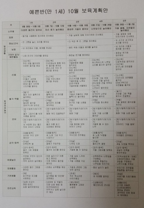 만1세반 10월교육계획안