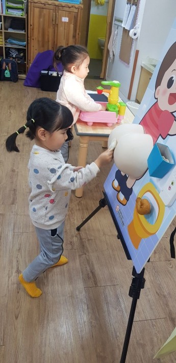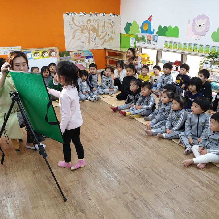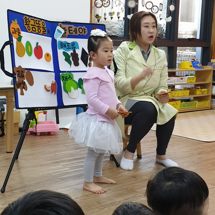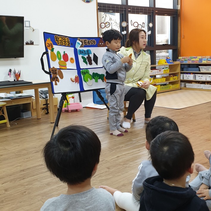 위생교육할때도 잘 앉아서 듣고 있네요^^