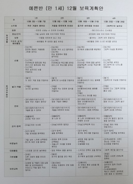 만1세12월보육계획안