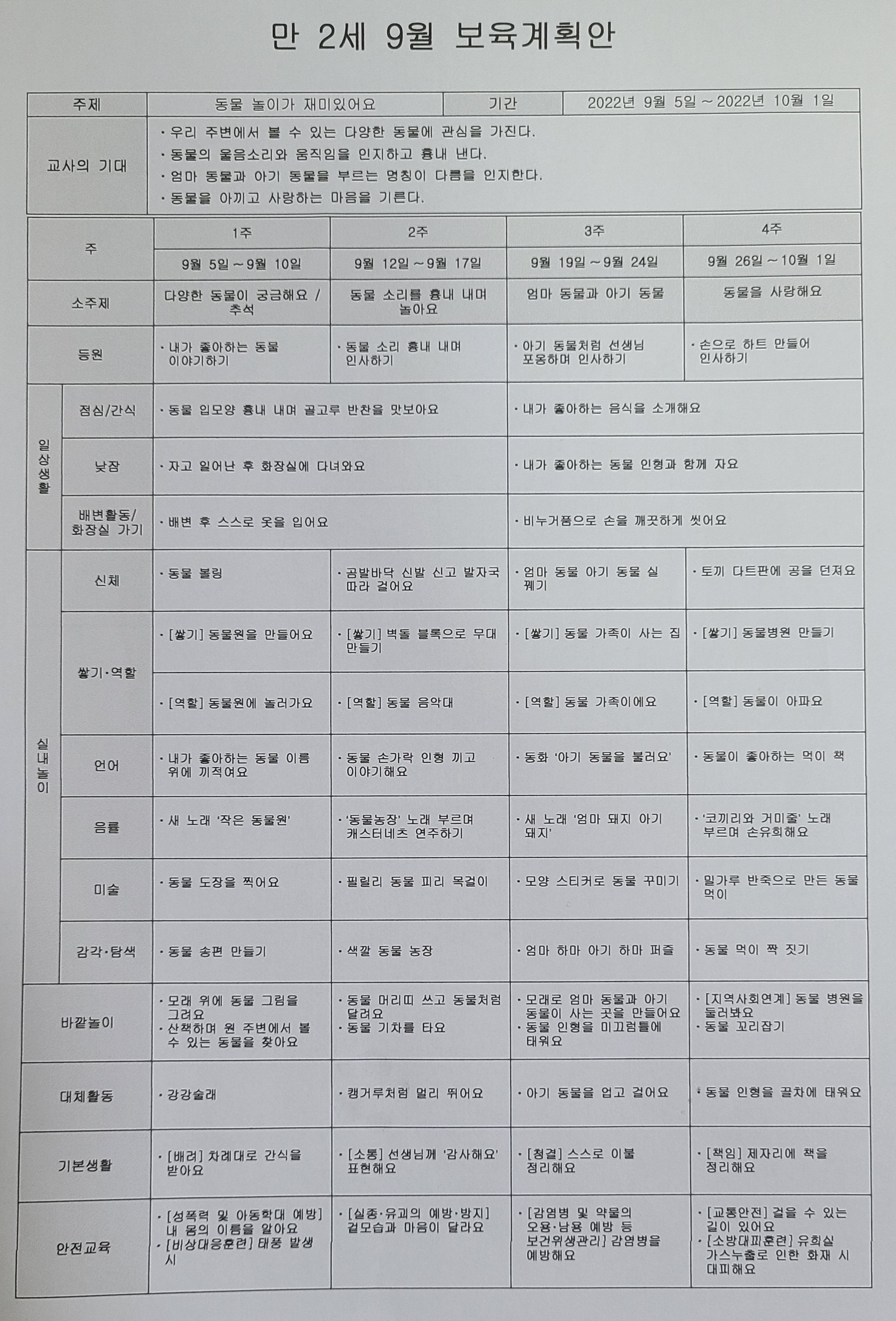 22년9월교육계획안