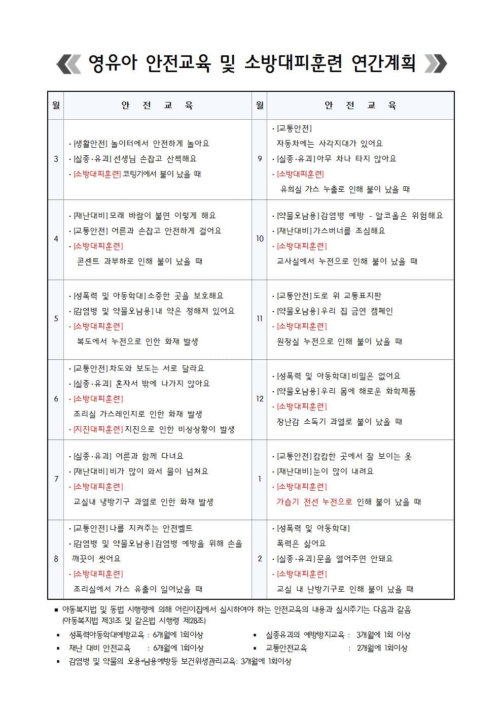 2023년영유아안전교육및소방대피훈련연간계획안